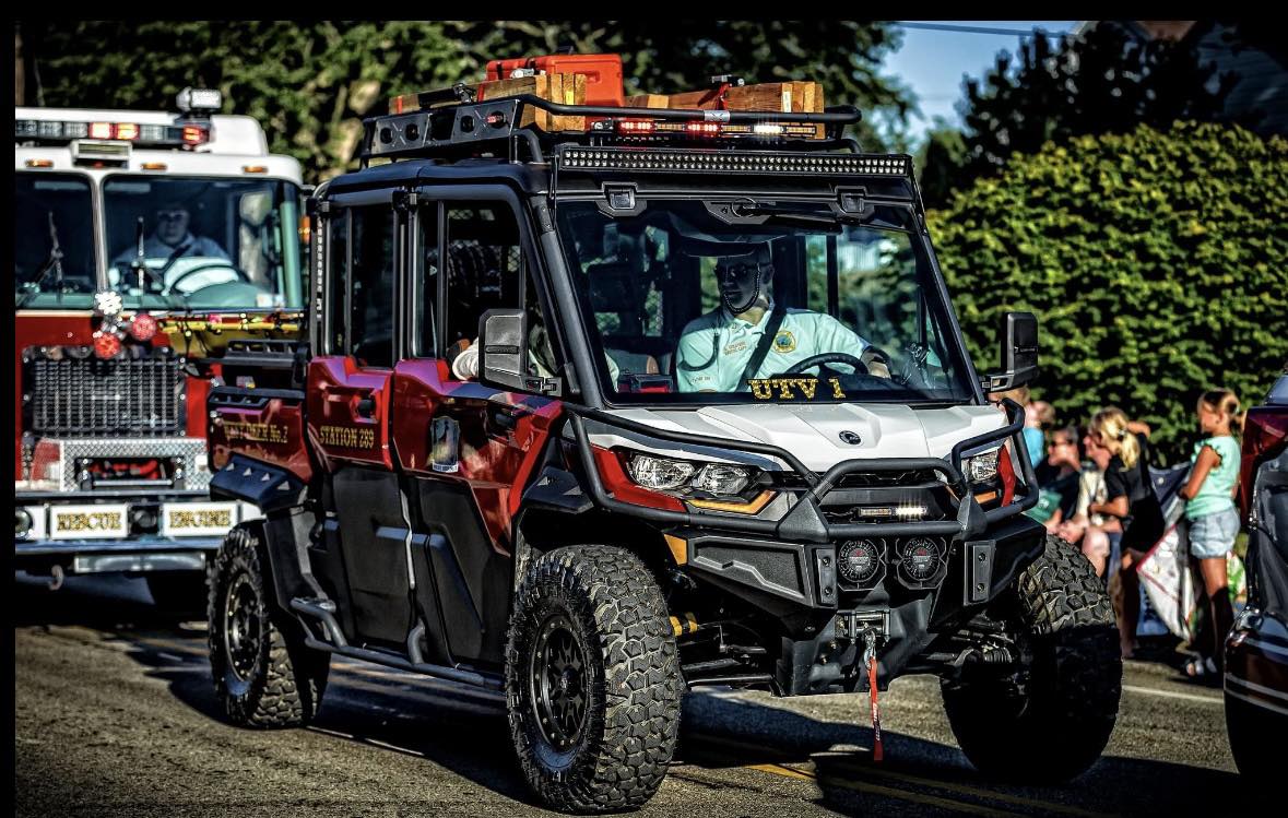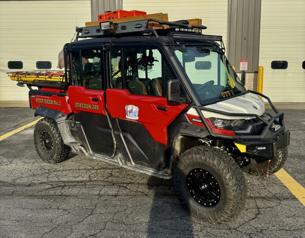 2024 Can-Am Defender. This unit was built and upfitted by Hexco Motorsports in Oshkosh, WI. It is equipped with an 85-gallon water tank and pump for brush fire support. The enclosed cab features both heating and air conditioning, allowing for patient care in harsh weather conditions. The unit is also outfitted with a full Whelen Core lighting system with V2V sync capabilities.